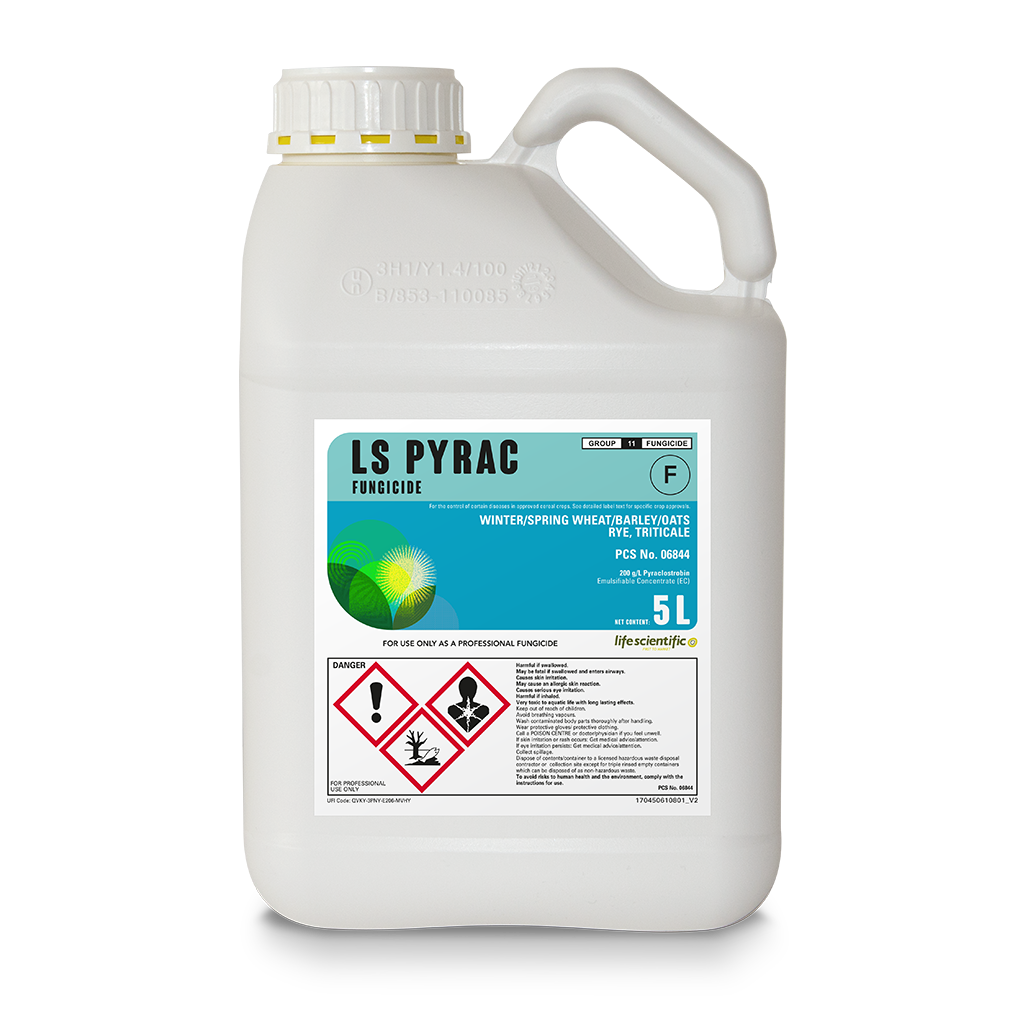 LS PYRAC contains PYRACLOSTROBIN 200 g/L formulated as an emulsifiable concentrate (EC).