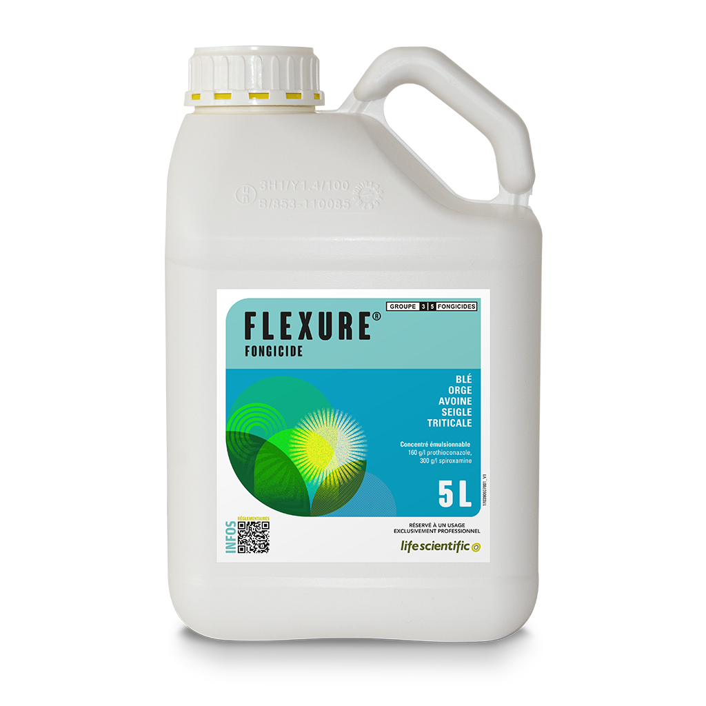 FLEXURE is a fungicide for the control of stem-base, foliar and ear diseases in wheat, rye, barley, oats, durum wheat and triticale. It contains 160 g/l prothioconazole and 300 g/l spiroxamine as an emulsifiable concentrate. The product is effective against a wide range of diseases including Eyespot, Septoria, Rusts, and Mildew.