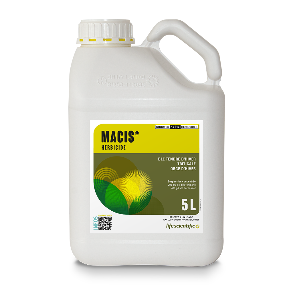 MACIS® est un herbicide anti-dicotylédones annuelles et anti-graminées annuelles du blé tendre d’hiver, du triticale et de l’orge d’hiver.