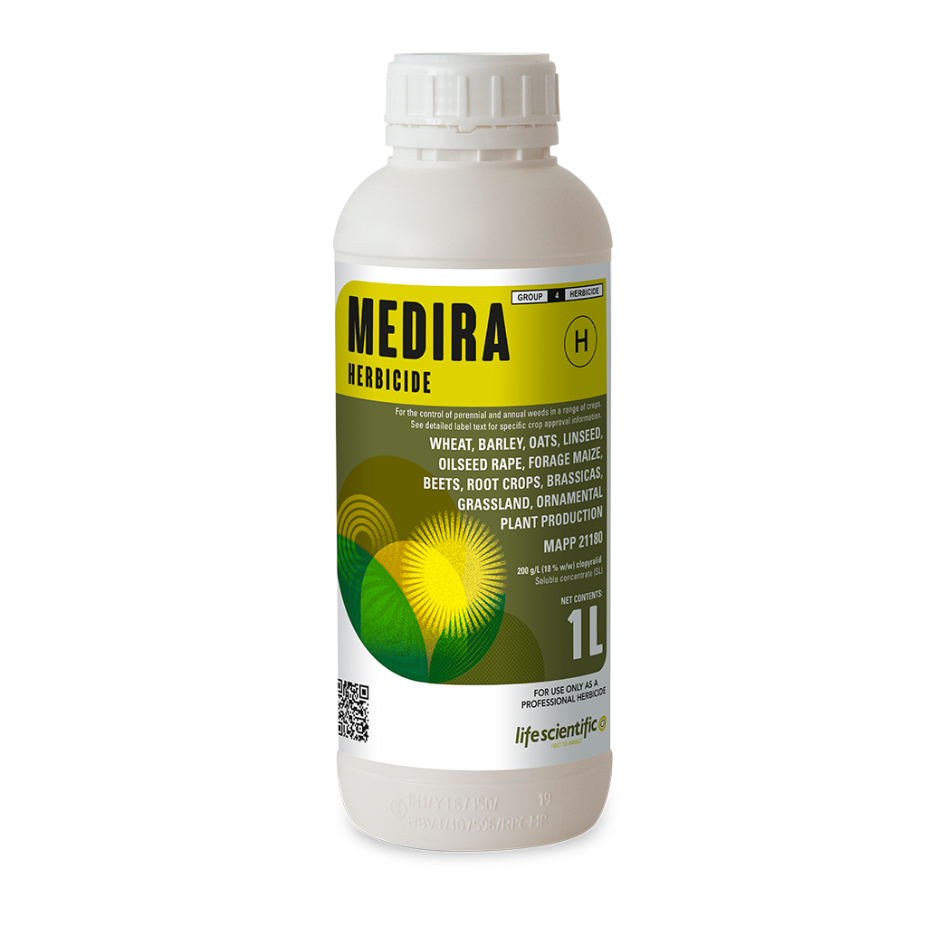 MEDIRA is a foliar acting herbicide effective against a range of perennial and annual weeds, especially mayweeds and creeping thistle, in a range of crops.